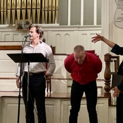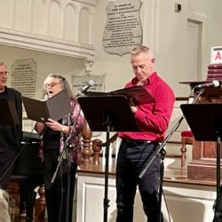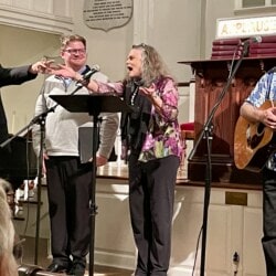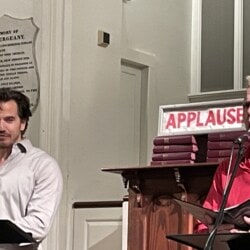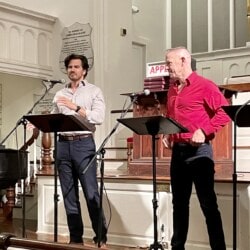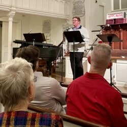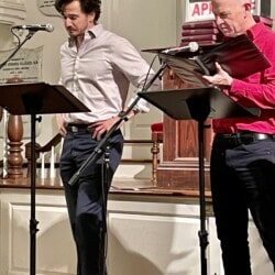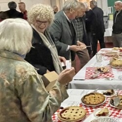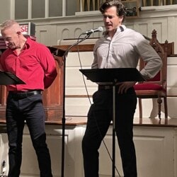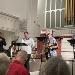 Saturday, November 2, 2024 A night of storytelling, singing, all-around merriment! Written and hosted by David Anderegg, the evening will feature an illustrious cast of musicians and actors, including: Tenor angel Alec Hicks The Lake Mahkeenac Radio Players Christopher Brophy and Rikke Borge Folk rock giant Bruce Mandel Pianist extraordinaire Tracy Wilson Head writer and host David Anderegg featuring special guest opera and theater superstar Douglas Williams Plus! There was a Pro-Am Pie Contest Proceeds will benefit charitable programs and the preservation of the historic 1824 building of The First Congregational Church, UCC, Stockbridge. Photos by Cindy Brown