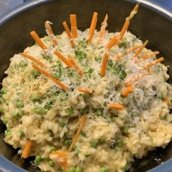 Here are the winners of the ongoing Star Baker competition. Theme: "Spring" Stephanie Bradford made a luscious Asparagus and Prosciutto Frittata with Goat Cheese accompanied by an Avocado and Cucumber Salad. Stephanie notes, "Certainly the asparagus is late spring although the rest may not be!" Ted Randolph's imaginative entry is a Spring Pea Risotto (with Fall Carrots).